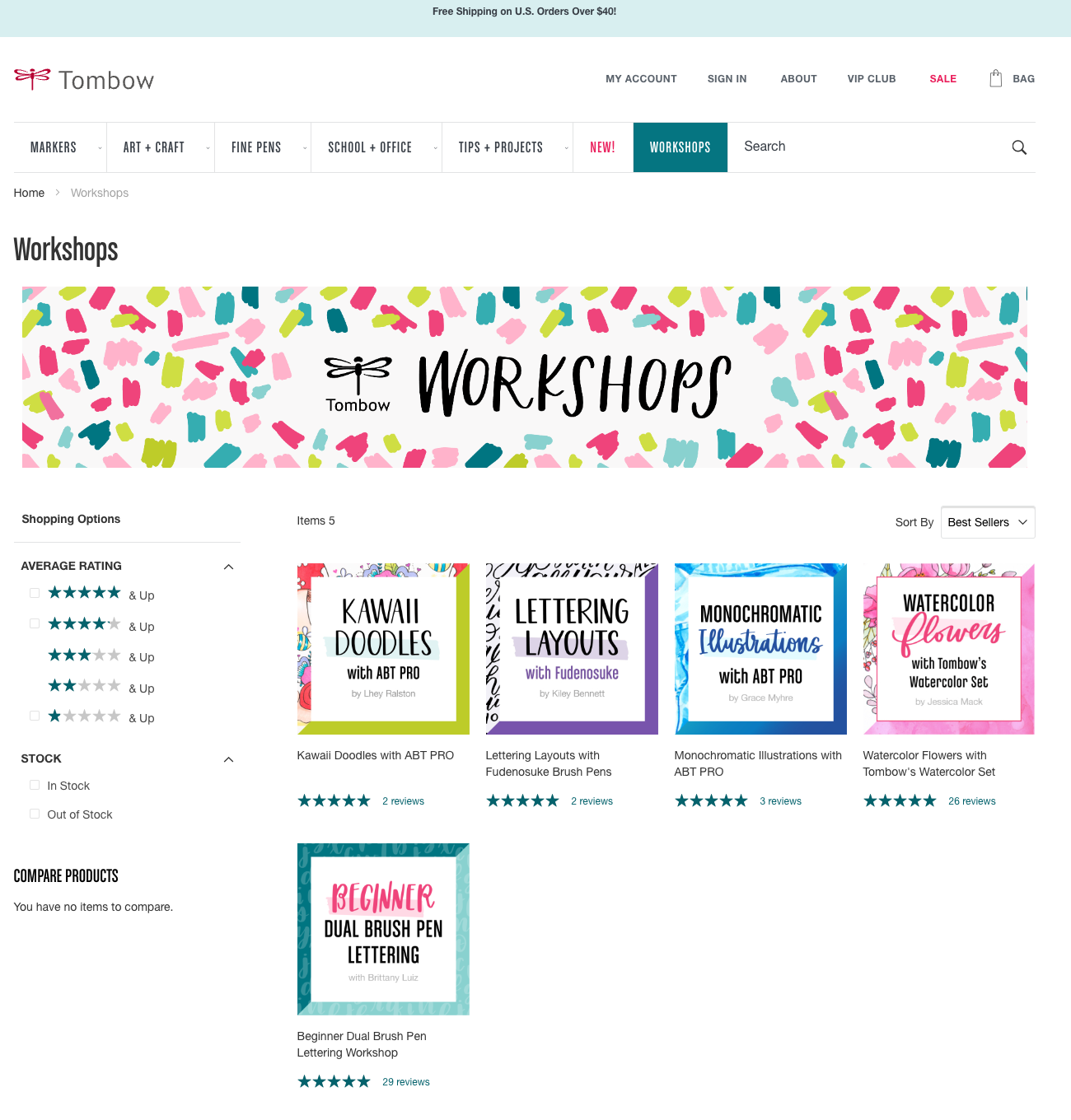 I provided strategic oversight, setting the plans for which products and techniques to feature based on the types of questions we commonly received about our products. I also developed and taught the first Tombow Workshop for the launch of the program, so we were able to successfully navigate the process in-house before contracting outside talent.