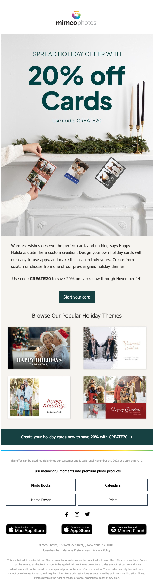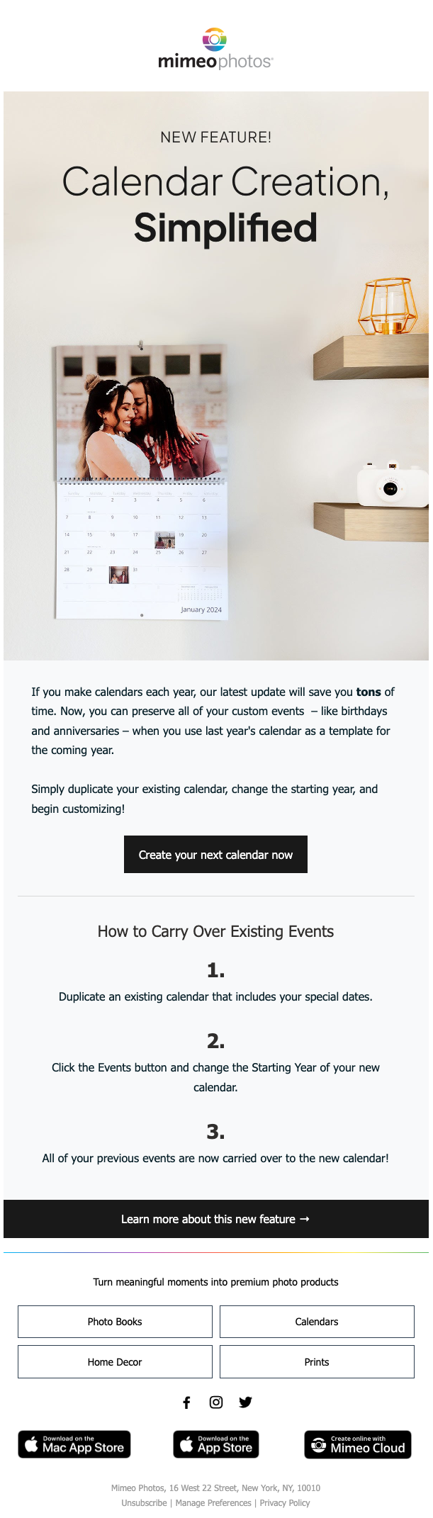 From August 2023 to June 2024, I designed all Mimeo Photos emails until a full-time graphic designer was hired, who now reports to me.